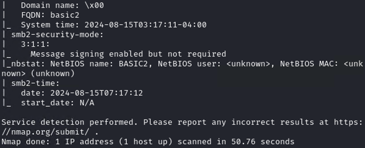 Run <mark style="color:orange;">**nmap**</mark> and save it in basicpentest directory