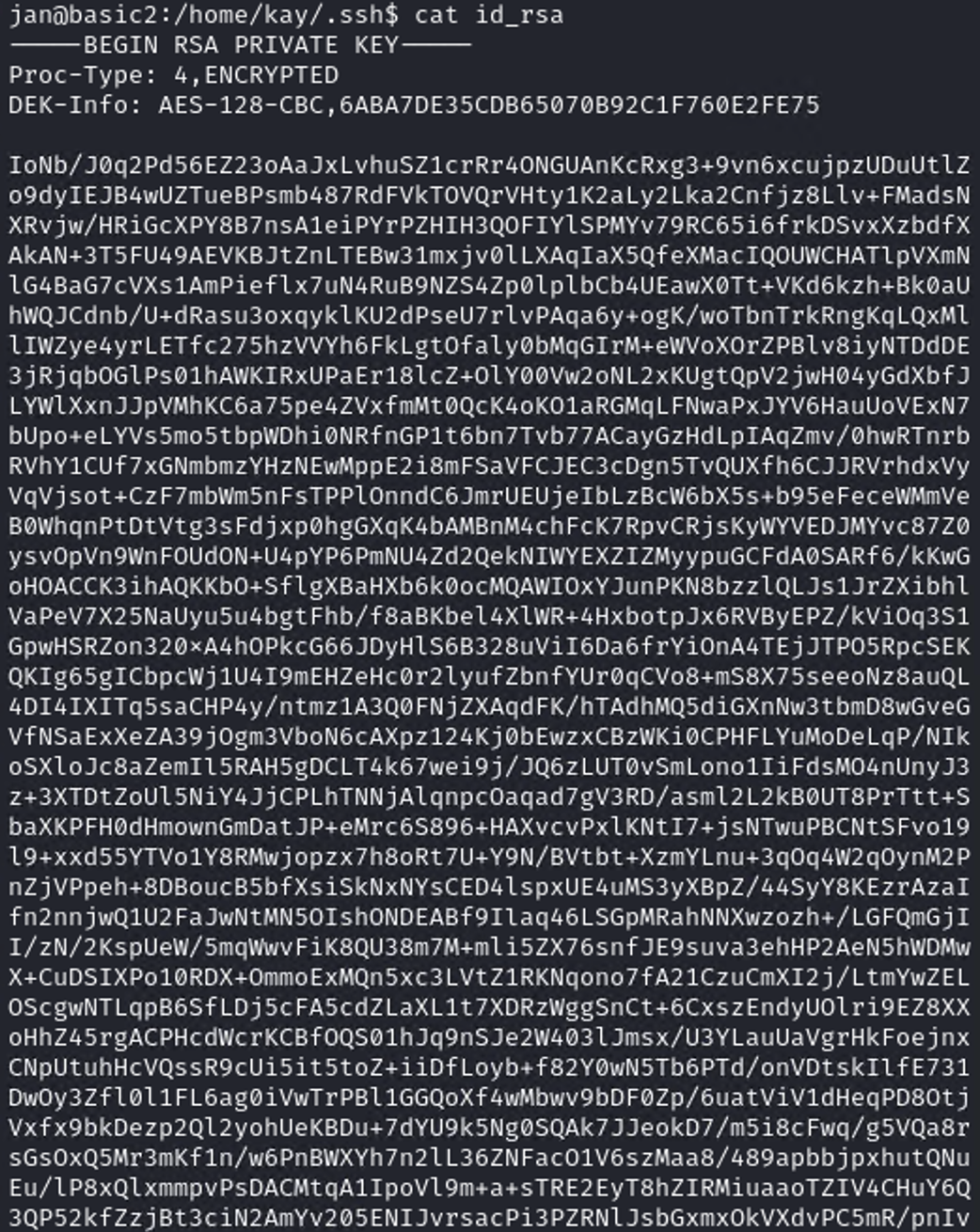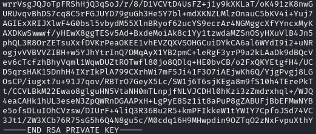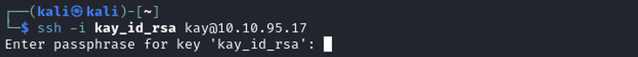 In your Kali machine, paste the contents into a file named `kay_id_rsa`