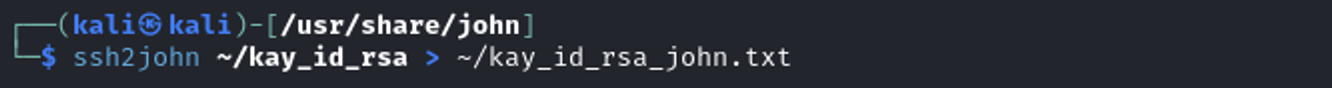 ssh2john ~/kay_id_rsa > ~/kay_id_rsa_john.txt