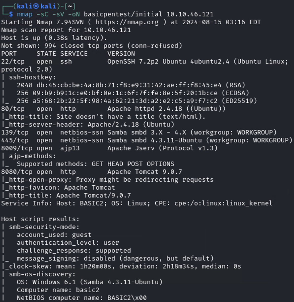 nmap -sC -sV 10.10.X.X -oN basicpentest/initial