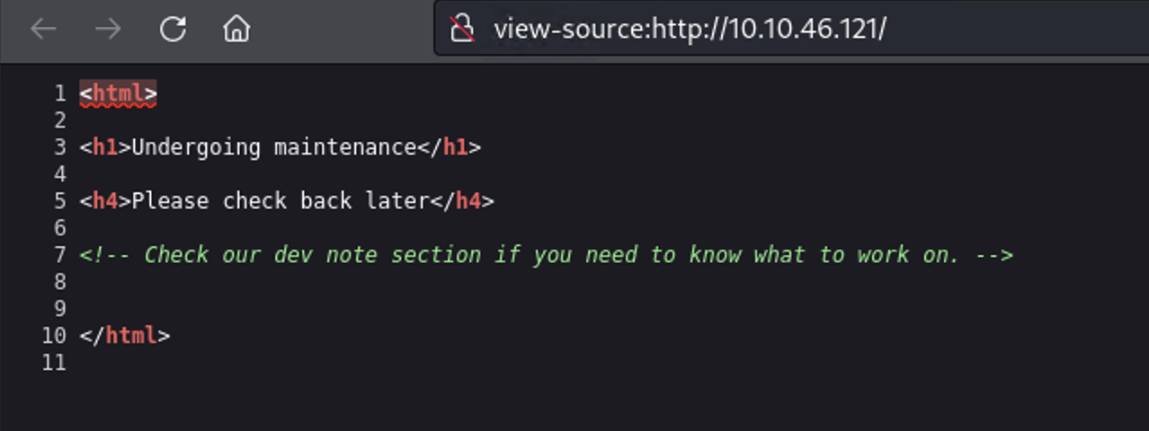 &#x20;Try to **`View Page Source`**. There is a note in green there to <mark style="color:green;">**check their dev note section**</mark>.&#x20;